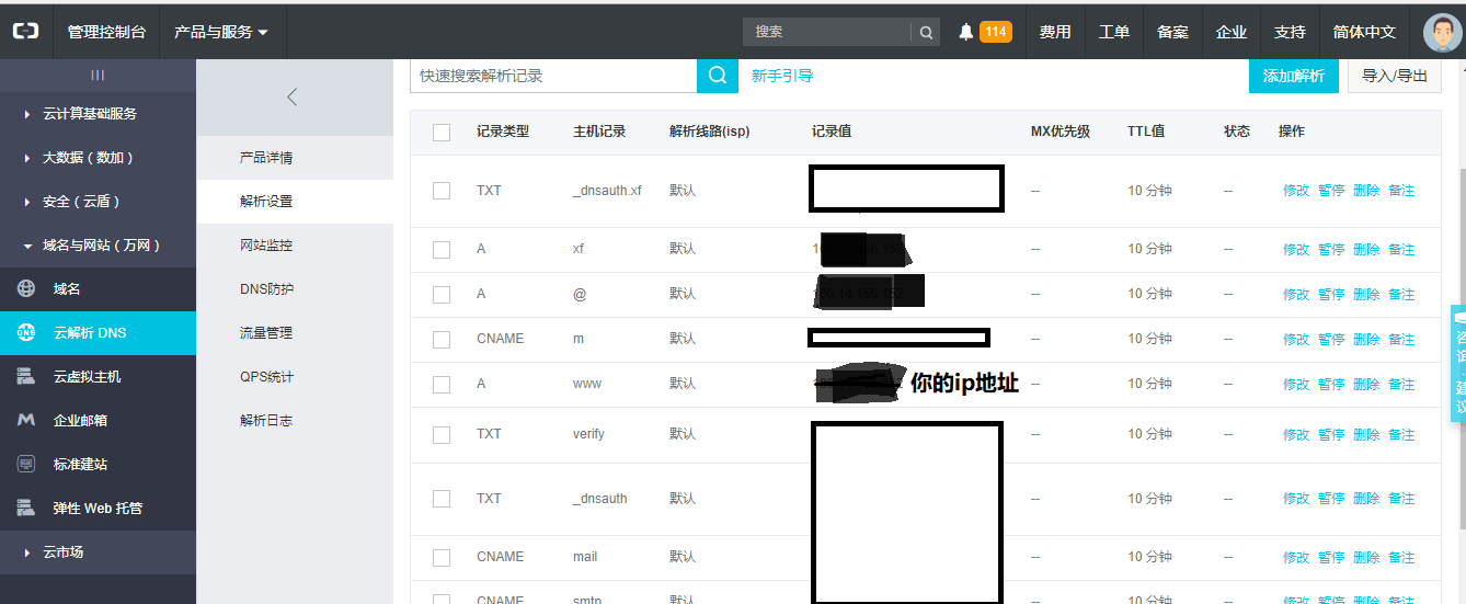设置好域名和对应的ip服务器地址