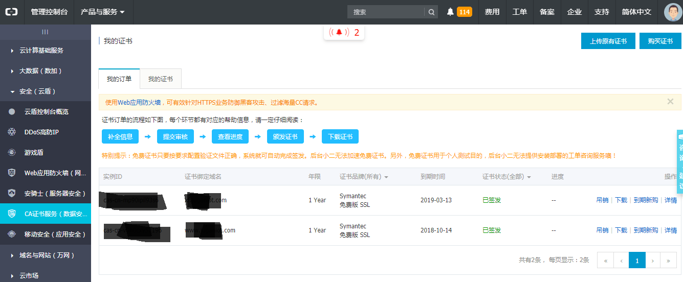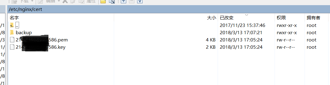 申请成功后下载nginx证书(zip里包含xx.pem和xx.key两个文件)