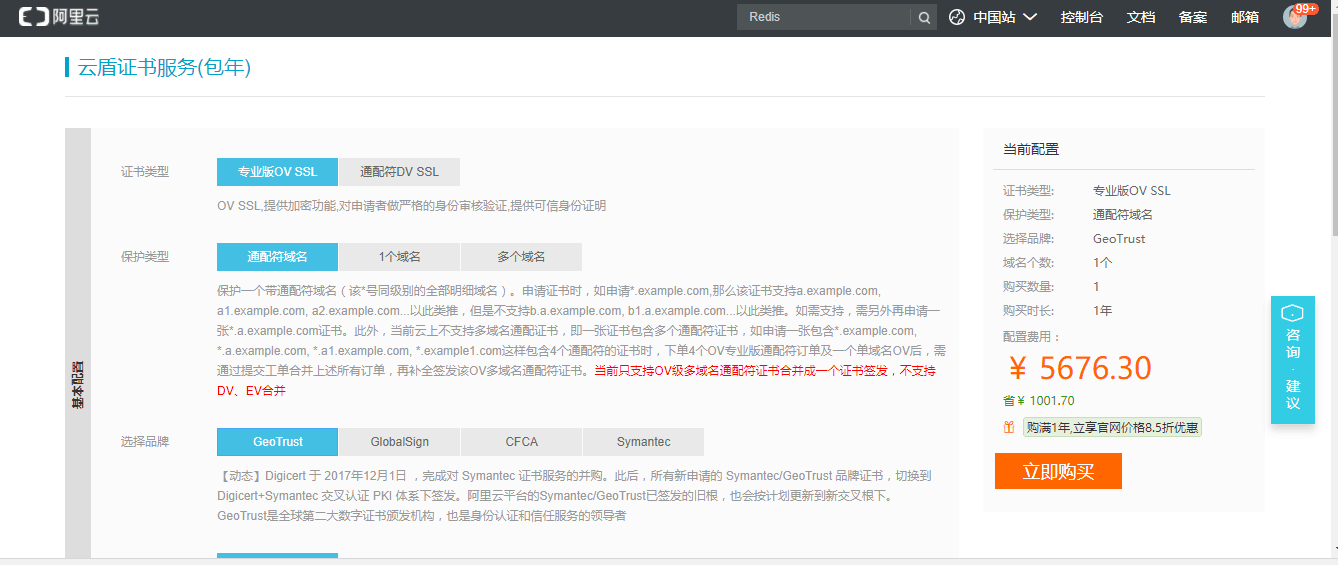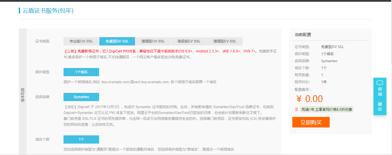 选择symantec一个域名免费型
