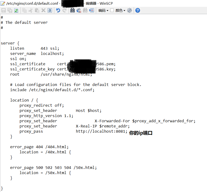 在nginx的conf文件里配置https默认端口443对应的tomcat端口